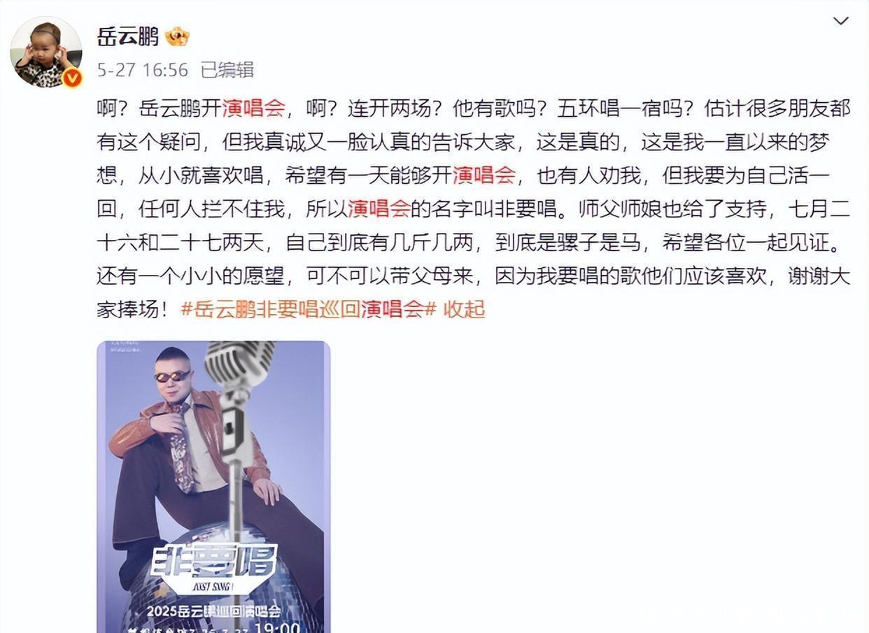 本以为涉足电影圈已经差不多了,可让人万万没想到的是,今年岳云鹏又将目光放在了演唱会上面。