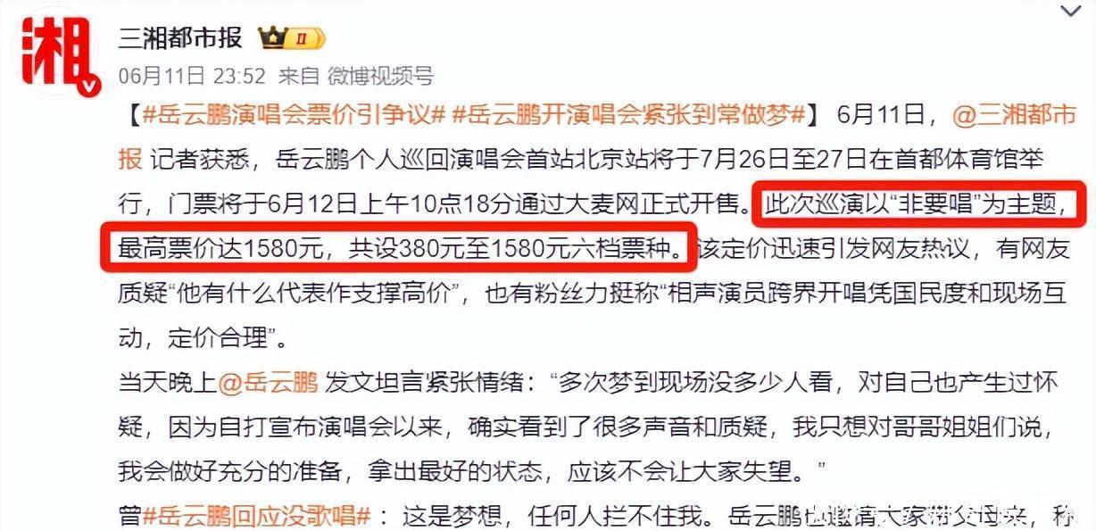 据了解,当时岳云鹏演唱会的最高票价,竟然卖到了1580元,比专业歌手的演唱会票价还要高。